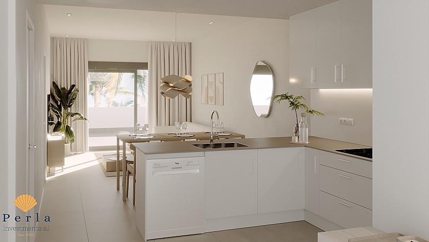 The apartment in question is 62 m² with 2 bedrooms featuring built-in wardrobes and 2 bathrooms. It offers a bright and spacious open-plan living area with a fully equipped kitchen and living room and 15 m2 balcony and 66m2 solarium with incredible view! Additionally, there is a private parking space in the basement, with provision for an electric car charging station, and a spacious storage room.
