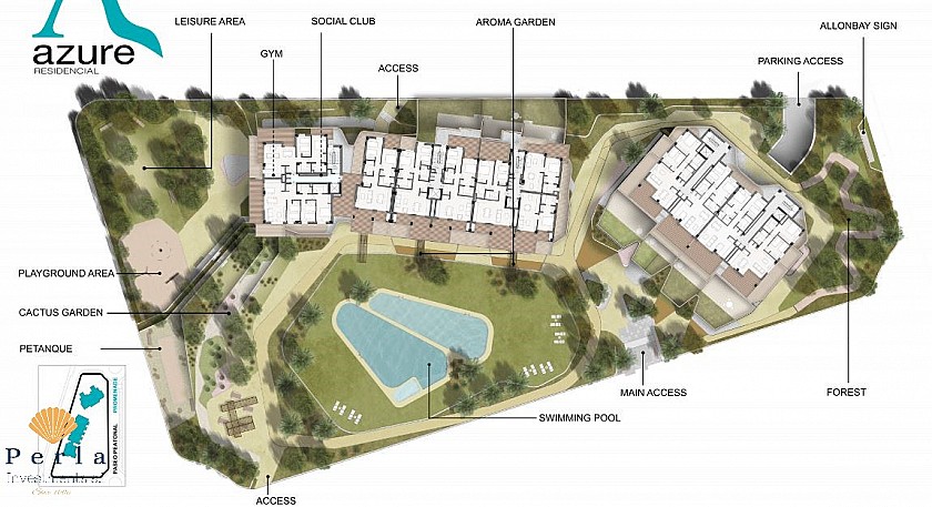 The apartments are designed to blend in with the natural beauty that the town has to offer, in the center of the apartment there is a beautiful swimming pool with a large area to sunbathe for up to 300 days a year, a playground for the children, a gym and a sauna.