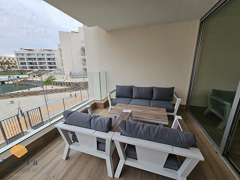 Apartamento elegante, listo para ser entregado y completamente amueblado, en una excelente ubicación en Villamartín, una popular zona residencial. Villamartín ofrece todos los servicios necesarios, como supermercados, bancos, farmacias, centros de salud y una excelente escuela. El apartamento tiene 93 m2, con 2 dormitorios, 2 baños y una cocina abierta con un hermoso y amplio salón, que da a una terraza orientada al sur con vistas al jardín comunitario.
