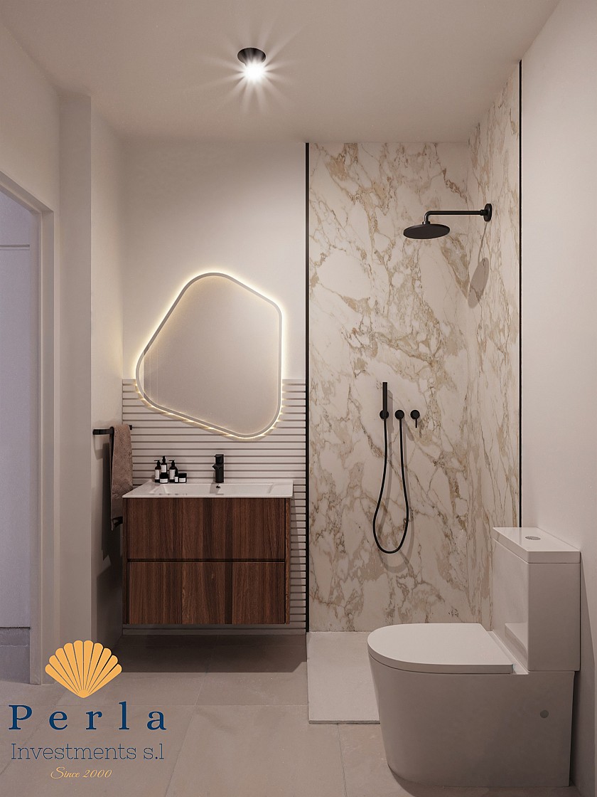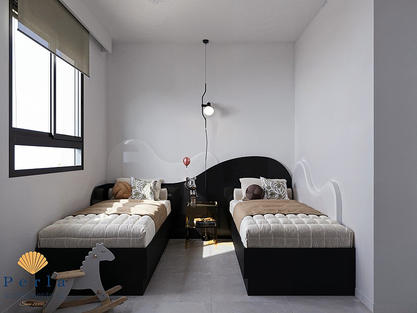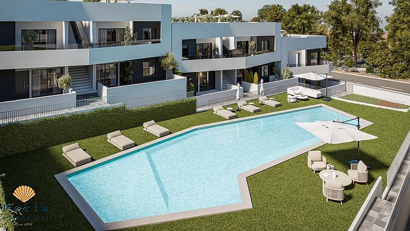 serhæðin sem er 85,88m2 er með 3 svefnherbergjum, 2 baðherbergjum og björtu alrými með stofu og eldhúsi. Glæsilegan garð með æðislegu útsýni sem aðgangur að sameiginlegum garði með tveimur sundlaugum og græn svæði þar sem hægt er að njóta sólarinnar sem skín í allt að 300 daga á ári.