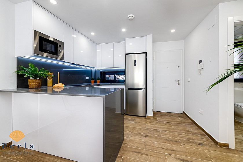 Auk þess er Zenia Boulevard verslunarmiðstöðin skammt frá, þar sem þín bíður mikið úrval verslana í yfir 80.000 m2 verslunarhúsnæði, að ógleymdir heilbrigðisþjónustu hins margrómaða Torrevieja spítala sem er í 15 mínútna ökufjarlægð að heiman.  Og fyrir sólarunnendur þá ertu í einungis nokkurra mínútna ökufjarlægð frá kílómetra löngum breiðum af fín sendnum ströndum sem hafa fengið vottun Evrópusambandsins fyrir gæði sjávar og þjónustu í formi Bláa fánans.