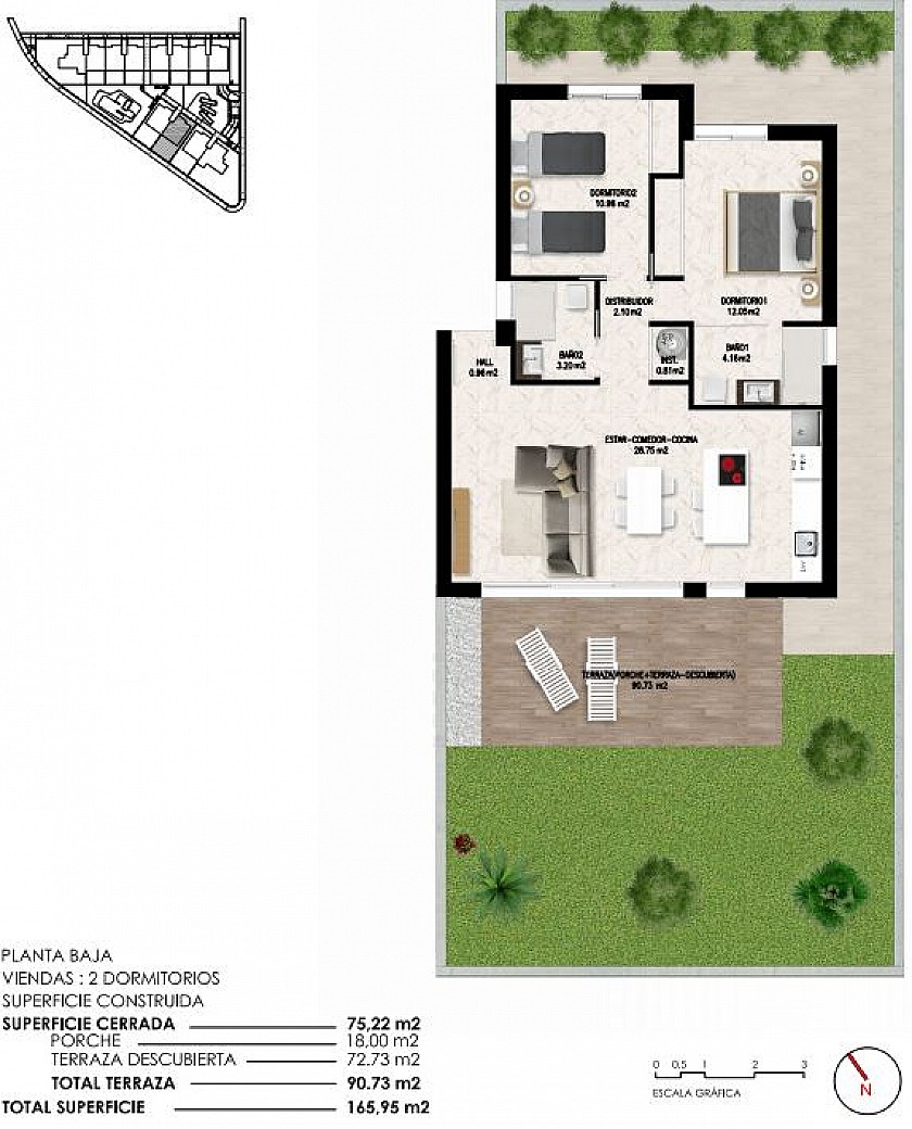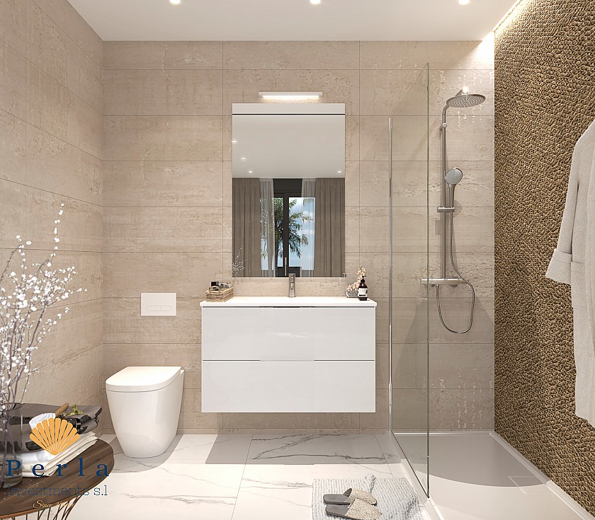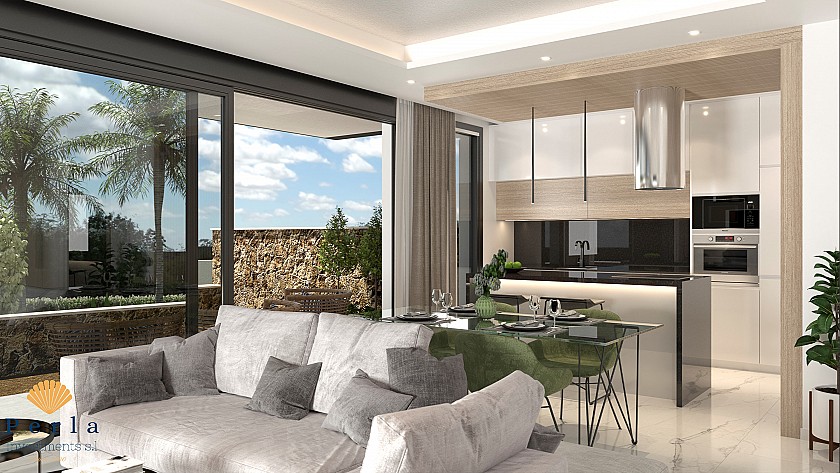 En þess má jafnframt geta að í eigninni er hiti í gólfum og því ætti engum að verða kalt að tipla á gólfunum snemma að vetrar morgni, áður en sólin kemur upp og yljar upp allt sem á vegi hennar verður.   Íbúðin er staðsett nálægt Villamartín golfvallarins, í aflokaðri íbúðarbyggð þar sem er einstaklega rúmgott og fallegt sundlaugar-, og garðsvæði