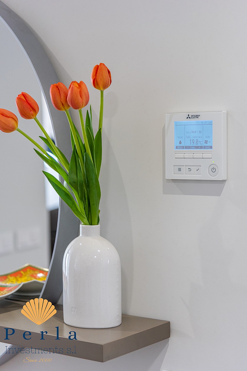 Björt og falleg þakíbúð í Villamartín. Íbúðin er með 2 svefnherbergjum með góðu skápaplássi og 2 baðherbergjum með hita í gólfum. Bjart og rúmgott alrými með fullbúnu eldhúsi með gæða heimilistækjum, borðstofu og stofu þaðan sem útgengt er á rúmgóðar svalir, einnig fylgja með íbúðinni stórar þaksvalir með fallegu útsýni. Íbúðin er útbúin snjallkerfi þaðan sem hægt er að stjórna ljósum, hita og glugga hlerum bæði úr síma og gagnvirkum hátölurum s.s. Alexa og Google Home.